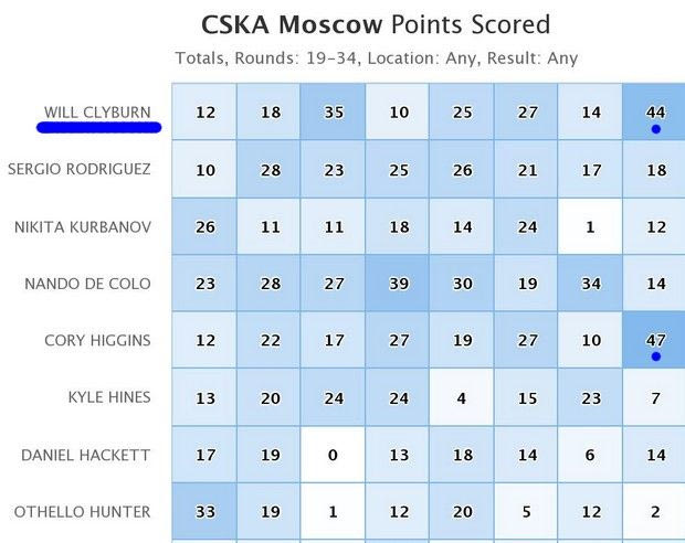 Ο Γουίλ Κλάιμπερν με 17.45 στο σύστημα αξιολόγησης – η καλύτερη επίδοση παικτών που συνεχίζουν, αφού υπολείπεται μονάχα των Τζέιμς / Πουαριέ και 13.6 στο on/off της Newstats.eu φαντάζει ως ο ιδανικός σμολ φόργουορντ για κάθε… Ιτούδη. Ένα παιδί με τρομερά αθλητικά προσόντα που έχει προοδεύσει πολύ την τελευταία διετία και πλέον -εκτός από πλούσιο επιθετικό ταλέντο και τ’ αθλητικά προσόντα- διαθέτει μια ισχυρή προσωπικότητα για να κρίνει αν χρειαστεί αγώνες. Μόνο τυχαίο δεν είναι το γεγονός πως είναι παρέα με τον Κόρι Χίγκινς οι δύο παίκτες με τους περισσότερους πόντους στα τελειώματα των αγώνων της ΤΣΣΚΑ.