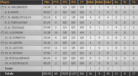 Οι γηπεδούχοι διαχειρίστηκαν άψογα το προβάδισμα που είχαν αποκτήσει, ξέφυγαν ακόμη περισσότερο (55-27, 60-31 στο 30′) και δεν κινδύνευσαν μολονότι για πέντε λεπτά στην τέταρτη περίοδο έμειναν χωρίς πόντο και συνολικά σημείωσαν μόνο οκτώ σε δέκα λεπτά.
