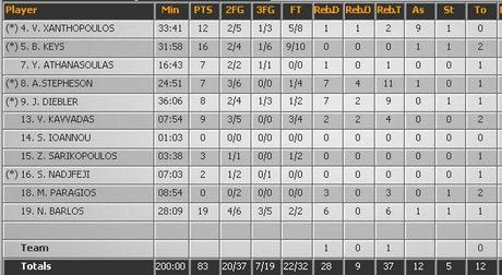 Βασίλης Ξανθόπουλος, ο αψεγάδιαστος. Πραγματικό κομπιούτερ ο Ελληνας πλέι μέικερ τελείωσε τον αγώνα με 12 πόντους, 9 ασίστ, 2 ριμπάουντ, 1 κλέψιμο και το κυριότερο, με 0 λάθη.