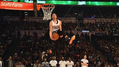 Τελείωσε! Τελείωσε! Ο LaVine έβαλε τον συμπαίκτη του, Shabazz Muhammad, να πετάξει τη μπάλα στο πίσω μέρος της μπασκέτας, πήδηξε ψηλά, υποδέχτηκε τη μπάλα, την πέρασε κάτω από τα πόδια του και κάρφωσε! Τέσσερα 10ρια και ένα 9αρι ο απολογισμός και σύνολο 49 πόντοι! Ο LaVine είναι ο νέος νικητής του διαγωνισμού Καρφωμάτων!