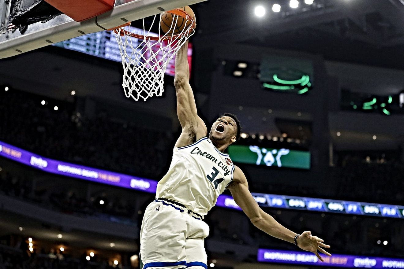 O Γιάννης Αντετοκούνμπο καρφώνει στο καλάθι των Σικάγο Μπουλς AP Photo/Aaron Gash