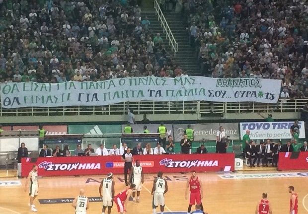 Πριν το πρώτο τζάμπολ τηρήθηκε ενός λεπτού σιγή στη μνήμη του ιστορικού παράγοντα του Παναθηναϊκού ενώ αμέσως μετά ανοίχτηκε ένα πανό στην κεντρική εξέδρα που έγραφε: “Θα είσαι για πάντα ο Παύλος μας, Αθάνατος. Θα είμαστε για πάντα τα παιδιά σου Θύρα 13”.