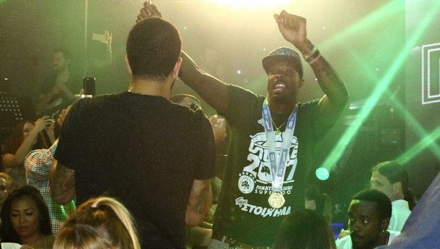 Η φιέστα του ΟΑΚΑ συνεχίστηκε σε νυχτερινό κέντρο της παραλιακής που δούλεψε δευτεριάτικα για την περίσταση. Το πούρο του Μπουρούση, το ζεϊμπέκικο του Φώτση, τα συνθήματα για τον Πειραιά και το στοίχημα Γιαννακόπουλου-Τζέιμς.