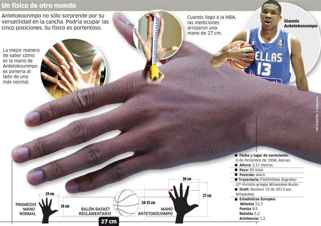 Γι’ αυτό το λόγο, η ηλεκτρονική έκδοση της ισπανικής εφημερίδας ” Marca” δημιούργησε ένα εξαιρετικό infographic με τα τεράστια χέρια του Έλληνα φόργουορντ.
