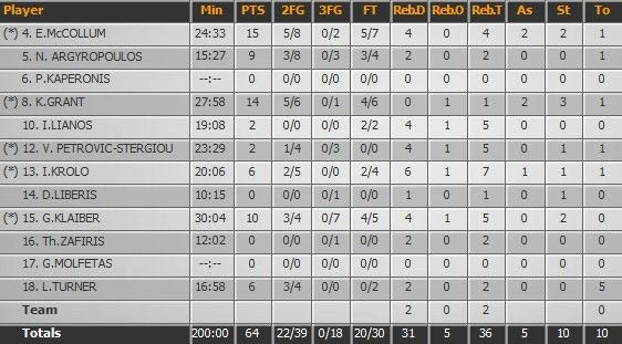 Ο Έρικ Μακόλουμ τα έκανε όλα στο παρκέ. Σκόραρε (15 πόντοι με 5/8 δίποντα και 5/7 βολές αλλά φυσικά όχι τρίποντο), μάζεψε ριμπάουντ (4 αμυντικά), μοίρασε 2 ασίστ κι έκανε 2 κλεψίματα. Κανένα σύστημα των Θεσσαλονικών δεν τον περιόρισε και ο Αμερικανός γκαρντ έκανε το δικό του πάρτι.