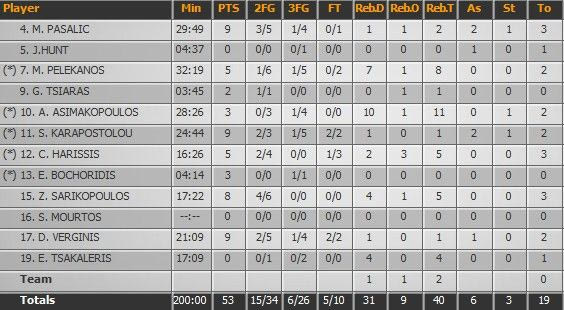 Στον αντίποδα, η ομάδα του Βαγγέλη Αγγέλου εμφανίστηκε αρκετά επιπόλαιη και με 19 λάθη, είχε διαγράψει τη μοίρα της πολύ πριν από την τελευταία κόρνα της γραμματείας. Ο Ζήσης Σαρικόπουλος ήταν ο μοναδικός “κίτρινος” που διασώθηκε από την κακή εμφάνιση, με τους Σωτήρη Καραποστόλου, Δημήτρη Βεργίνη και Μουχάμεντ Πάσαλιτς να σπάνε τα ταμπλό. Ως αποτέλεσμα, οι Πατρινοί έφτασαν στην 3η σερί νίκη που τους απομακρύνει από τη ζώνη του υποβιβασμού.