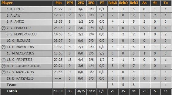 Εν αντιθέσει με το παιχνίδι της προηγούμενης Παρασκευής και την ήττα από τη Σιένα, ο Ολυμπιακός είχε πολλά βέλη στη φαρέτρα του. Ο αθόρυβος, αλλά ουσιαστικός Πρίντεζης, ο δραστήριος Λο και οι μακρινοί εκτελεστές (Μάντζαρης, Περπέρογλου) έκαναν τη διαφορά για τον Ολυμπιακό. Από πλευράς Απόλλωνα, σκόραραν μόλις 5 παίκτες!