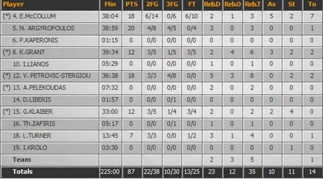 61-63 με 2/2 βολές από τον Νικολόπουλο.
