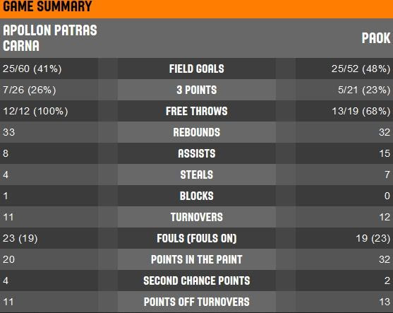 Απόλλων Πατρών – ΠΑΟΚ 69-68