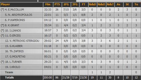 Τους 50 από τους 86 πόντους του Απόλλωνα τους πέτυχαν δύο παίκτες, ο ΜακΚόλουμ και ο Πέτροβιτς (26 και 24). Δικαιωματικά λοιπόν θα πάρουν τον άτυπο τίτλο του MVP.