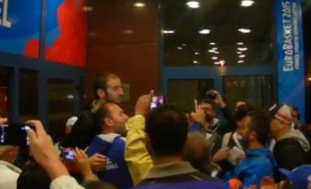 Οι Έλληνες φίλαθλοι περίμεναν στο ξενοδοχείο την “γαλανόλευκη” αποστολή, την οποία υποδέχθηκαν με συνθήματα, ζητώντας το Ευρωπαϊκό, αλλά και τον… Κουφό στη θέση του πρωθυπουργού!