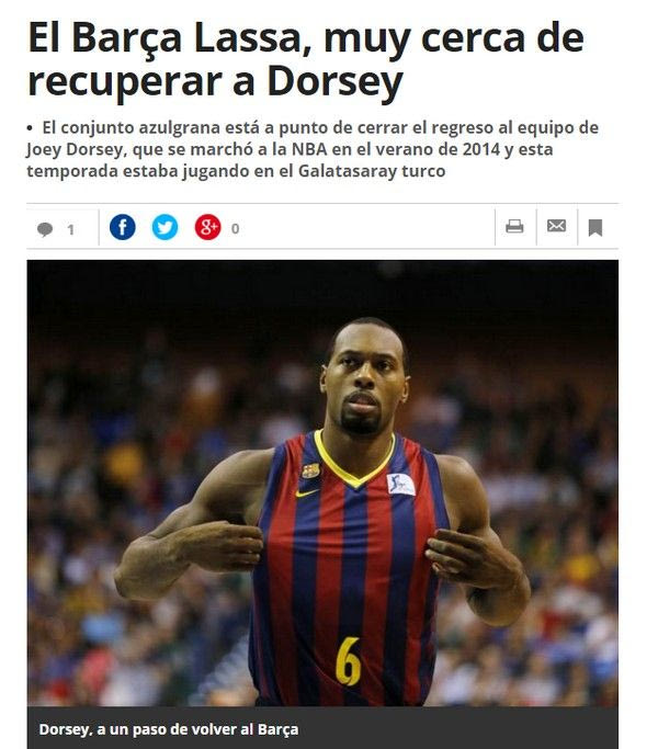 Η πάντα έγκυρη σε θέματα της μπασκετικής Μπαρτσελόνα “El Μundo Deportivo” έγραψε επίσης ότι ο Ντόρσεϊ βρίσκεται πολύ κοντά στην επιστροφή του στην Μπαρτσελόνα έτσι ώστε να αντικαταστήσει τον Σέιν Λαουάλ. Οι πληροφορίες αναφέρουν ότι οι Καταλανοί πλήρωσαν μπάι άουτ για τον παίκτη ύψους 250.000 ευρώ.
