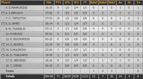 Ο Τζέιμς ήταν αρκετά άστοχος και καταχράστηκε της εμπιστοσύνης που του έδειξε ο Βαγγέλης Αλεξανδρής. Τελείωσε τον αγώνα με 2/7 σουτ εντός παιδιάς και 3/7 βολές.