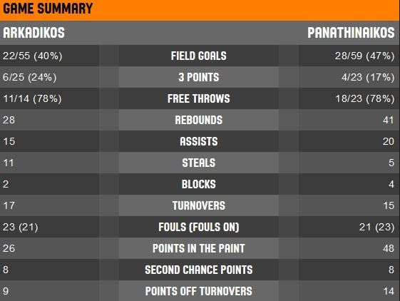 Αξιοπρεπέστατη εικόνα για τον Αρκαδικό που πάλεψε όσο μπορούσε το ματς και δεν έγινε έρμαιο στις διαθέσεις των φιλοξενούμενων. Για τον Παναθηναϊκό ήταν μία… χαλαρή προπόνηση ενόψει Λοκομοτίβ. Τίποτα παραπάνω για ένα παιχνίδι με… δεδομένο τέλος.
