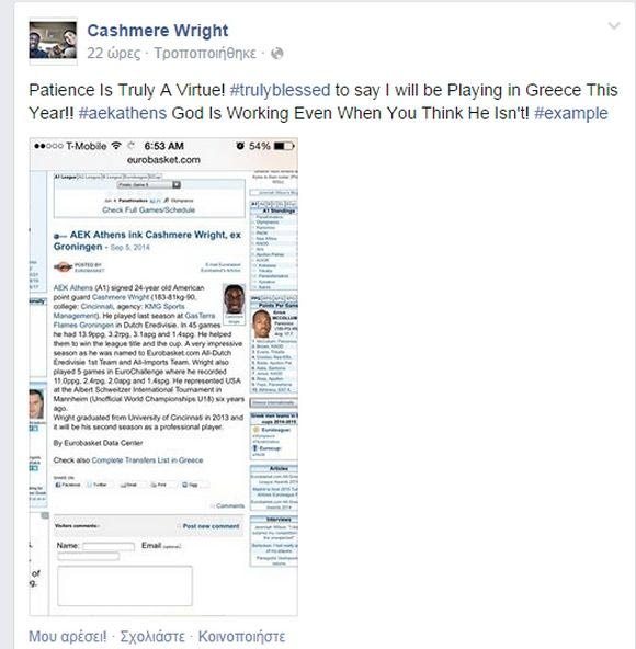 Κατά την περυσινή χρονιά, ο 24χρονος άσος αγωνιζόταν στην ολλανδική Χρόνινχεν, με την οποία κατέκτησε το πρωτάθλημα, ενώ μετά την ολοκλήρωση της συμφωνίας με την ΑΕΚ, μοιράστηκε τη χαρά του με τους “φίλους” του στο Facebook.