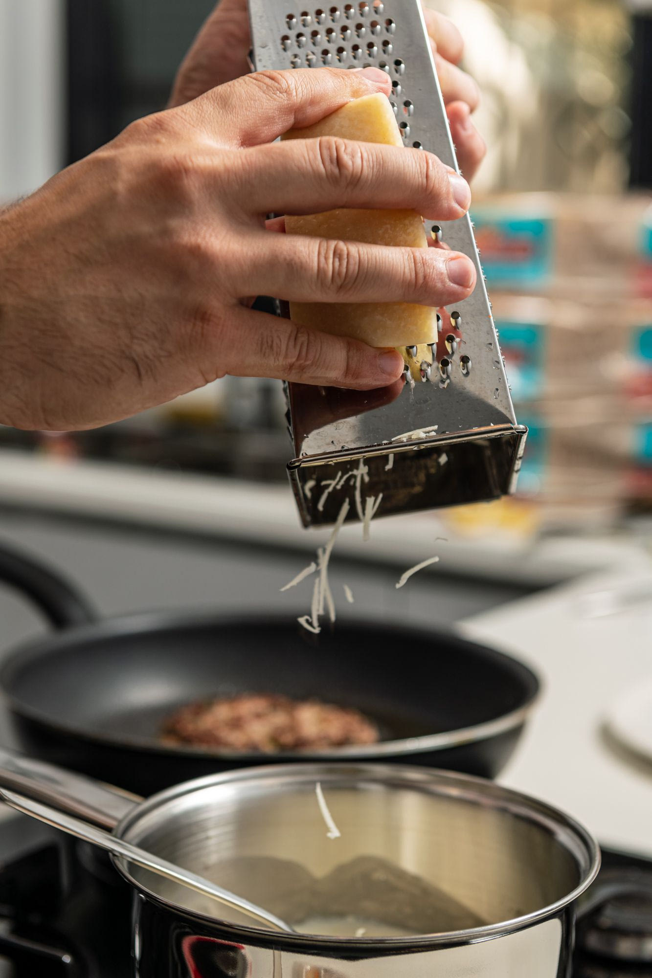 Πλάθουμε τον κιμά σε μπιφτέκι.