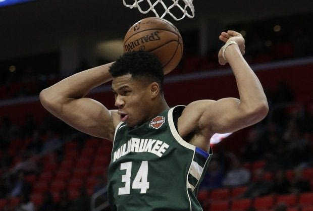 Milwaukee Bucks forward Giannis Antetokounmpo dunks during the second half of an NBA basketball game against the Detroit Pistons, Friday, Nov. 3, 2017, in Detroit. (AP Photo/Carlos Osorio) AP Photo/Carlos Osorio