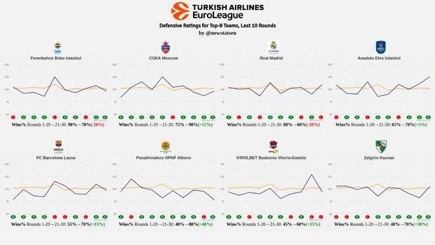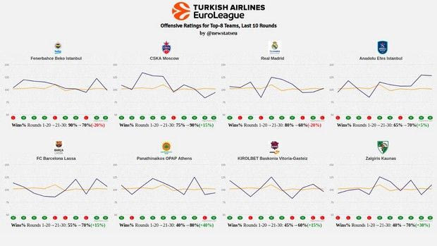 > Η ΤΣΣΚΑ είχε το καλύτερο ρεκόρ από την 21η έως την 30η αγωνιστική και ήταν το 9-1. Ακολούθησε ο Παναθηναϊκός με 8-2.