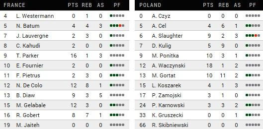Η Γαλλία νίκησε γιατί… μετά τον αρχικό αιφνιδιασμό και το 23-16 των Πολωνών πόνταρε στην ποιοτική περιφέρειά της. Οι Ντε Κολό και Ζελαμπάλ έφεραν την ανατροπή και ο Τόνι Πάρκερ, αφού κατέρριψε την επίδοση του Νίκου Γκάλη, πήρε τη σκυτάλη στην τρίτη περίοδο προκειμένου οι “τρικολόρ” να έχουν σταθερά το προβάδισμα. Έφτασαν ακόμη και στο +9 (62-53), προτού η παρέα του Γκόρτατ απειλήσει και διεκδικήσει μέχρι τέλους τις πιθανότητές της. Το τρίποντο της ισοφάρισης όμως πήρε ο Πολωνός σέντερ και βρήκε αναπόφευκτα σίδερο.