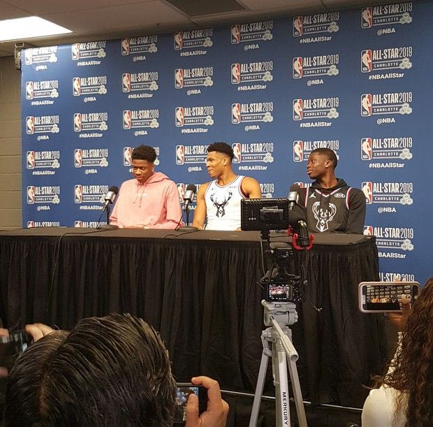 Οι media days των Rising Stars και των All-Stars έγιναν Παρασκευή και Σάββατο στο Bojangles Coliseum, ένα γήπεδο έξω από την πόλη που χρησιμοποιείται για διάφορα events. “Τι είναι το Bojangles;”, ρωτήσαμε τον οδηγό του ταξί που ήταν τεράστιος φαν των Οκλαχόμα Σίτι Θάντερ. “Είναι fast food. Πρέπει να το δοκιμάσεις”, απάντησε. Η συγκεκριμένη αλυσίδα έχει καταστήματα στην νοτιοανατολική ακτή των ΗΠΑ και από το απόγευμα της Πέμπτης έως το μεσημέρι της Δευτέρας πρέπει να είχε έσοδα όσα έχει τον υπόλοιπο χρόνο στην Σάρλοτ. Πικάντικες κοτομπουκιές και φτερούγες, εκπληκτικές τηγανιτές πατάτες, αν βρεθείτε σύντομα σε αυτή την πλευρά των ΗΠΑ θυμηθείτε μας.