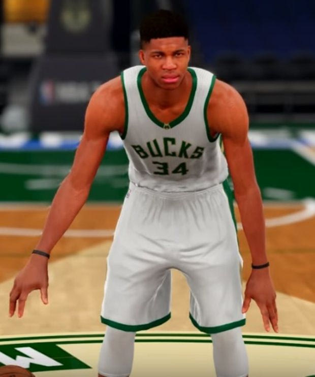 Στηrookieσεζόν του ο Γιάννης είχεoverall 60. Ήταν χαμηλά στο παιχνίδι, άλλωστε ουδείς περίμενε από εκείνον να κάνει πράγματα και θαύματα στην πρώτη χρονιά της επαγγελματικής του καριέρας. Στη δεύτερη εμφάνισή του στο παιχνίδι, στο2K15δηλαδή,ο 20χρονος τότε περιφερειακός ανέβηκε στο74, για να συνεχίσει στο79 (2K16),στο 83 (2Κ17), στο 91 (2Κ18) και να βρεθεί φέτος στο 94 που είναι η πέμπτη καλύτερη αξιολόγηση μετά από εκείνες τωνLeBron James (98), Kevin Durant (97), James Harden (96), Stephen Curry (95).