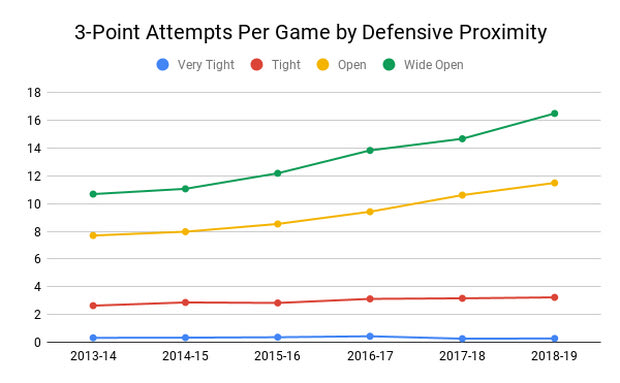 Οι ομάδες δεν εκτελούν απλά περισσότερα τρίποντα. Εκτελούν περισσότερα ελεύθερα τρίποντα και για αυτό δεν προκαλεί καμία έκπληξη πως η φετινή επιθετική αποτελεσματικότητα είναι η μεγαλύτερη της ιστορίας.