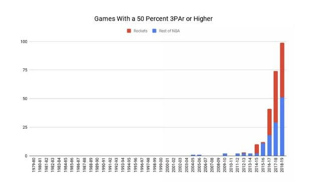 Τη σεζόν 2013-14 ήταν 464 οι βραδιές που ομάδες είχαν μαζί από 70 σουτ τριών πόντων. Φέτος αυτές οι περιπτώσεις είναι ήδη 255.