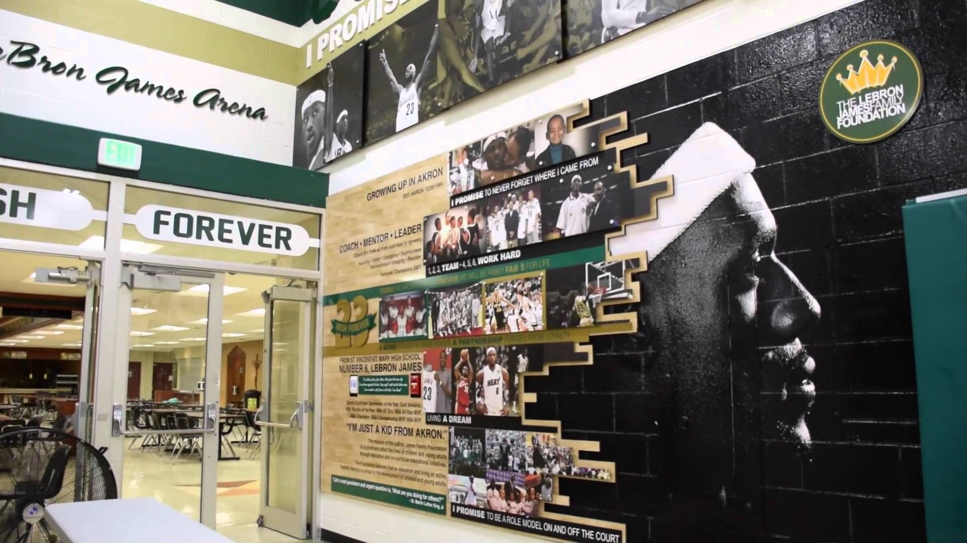 Ο σπουδαίος Λεμπρόν έχει γνωρίσει την ύψιστη τιμή το Δεκέμβριο του 2013. Τότε, οι υπεύθυνοι του σχολείου Σ εντ Βίνσεντ-Σεντ Μέρι του Άκρον του Οχάιο, απ’ το οποίο άρχισε την μεγάλη καριέρα του ο “Βασιλιάς” αποφάσισαν να ονομάσουν το γήπεδο μπάσκετ σε “LeBron James Arena”. Μάλιστα, ο σούπερ σταρ των Κλίβελαντ Καβαλίερς προσέφερε 1.000.000 δολάρια για την πλήρη ανακαίνιση και ανακατασκευή του γυμναστηρίου. Επιπλέον, δημιουργήθηκε ένα τεράστιο μωσαϊκό στον ένα τοίχο του γυμναστηρίου με τη φιγούρα του Λεμπρόν.