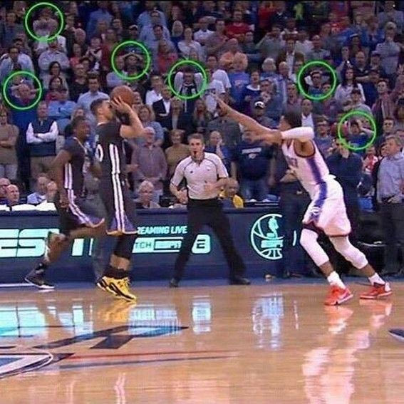 Η φωτογραφία είναι από το παιχνίδι των Γουόριορς με τους Θάντερ ελάχιστα κλάσματα του δευτερολέπτου πριν η μπάλα φύγει από τα χέρια του Αμερικανού σούπερ σταρ.