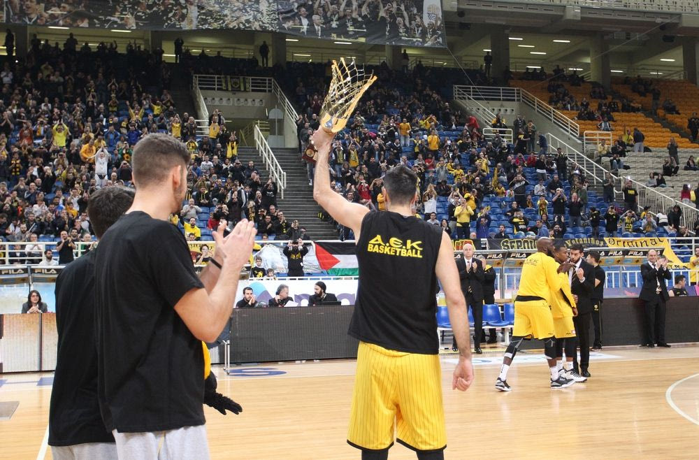Με το που σήκωσε την κούπα στο αέρα του ΟΑΚΑ γνώρισε την αποθέωση από τους φίλους της ΑΕΚ που βρέθηκαν στο Μαρούσι για το ματς κόντρα στον Κολοσσό.