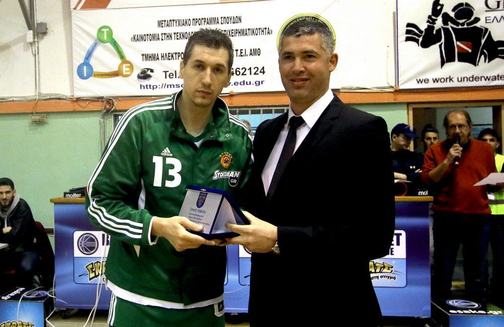 Ο Δημήτρης Διαμαντίδης βραβεύθηκε πριν από το τζάμπολ της αναμέτρησης με την Καβάλα για την προσφορά του στο μπάσκετ και όλο το γήπεδο σηκώθηκε στο... πόδι για να τον χειροκροτήσει.