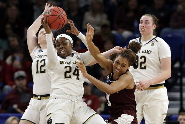 Notre Dame's Arike Ogunbowale (24) grabs a rebound against Texas A&M's Aja Ellison (0) during the second half of a regional semifinal game in the NCAA women's college basketball tournament, Saturday, March 30, 2019, in Chicago. (AP Photo/Nam Y. Huh) AP