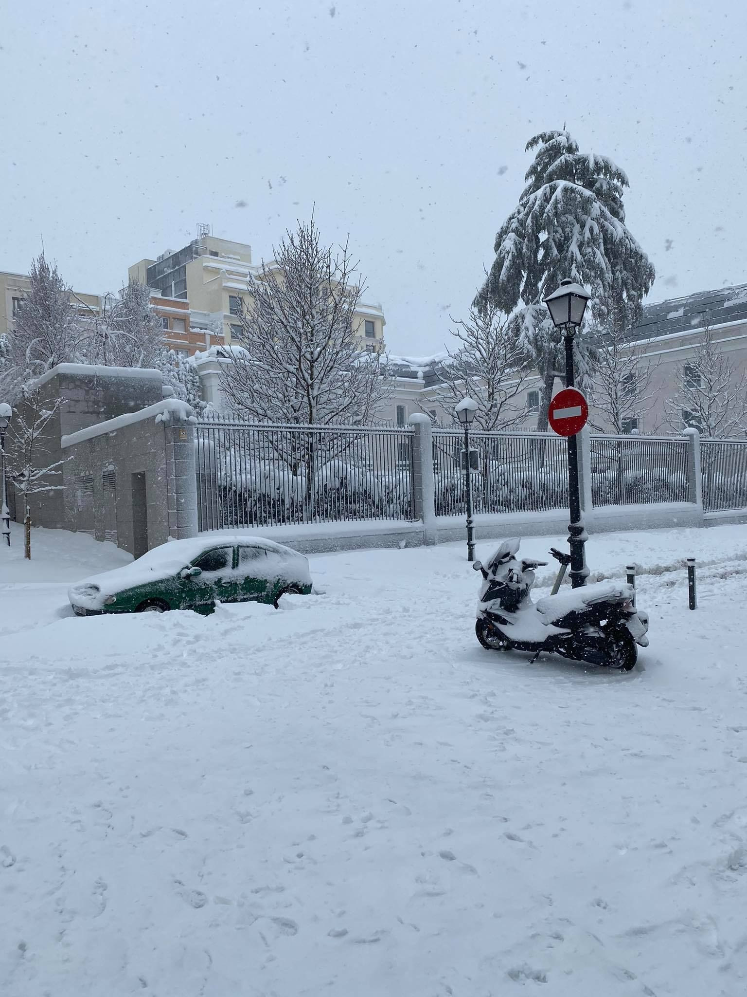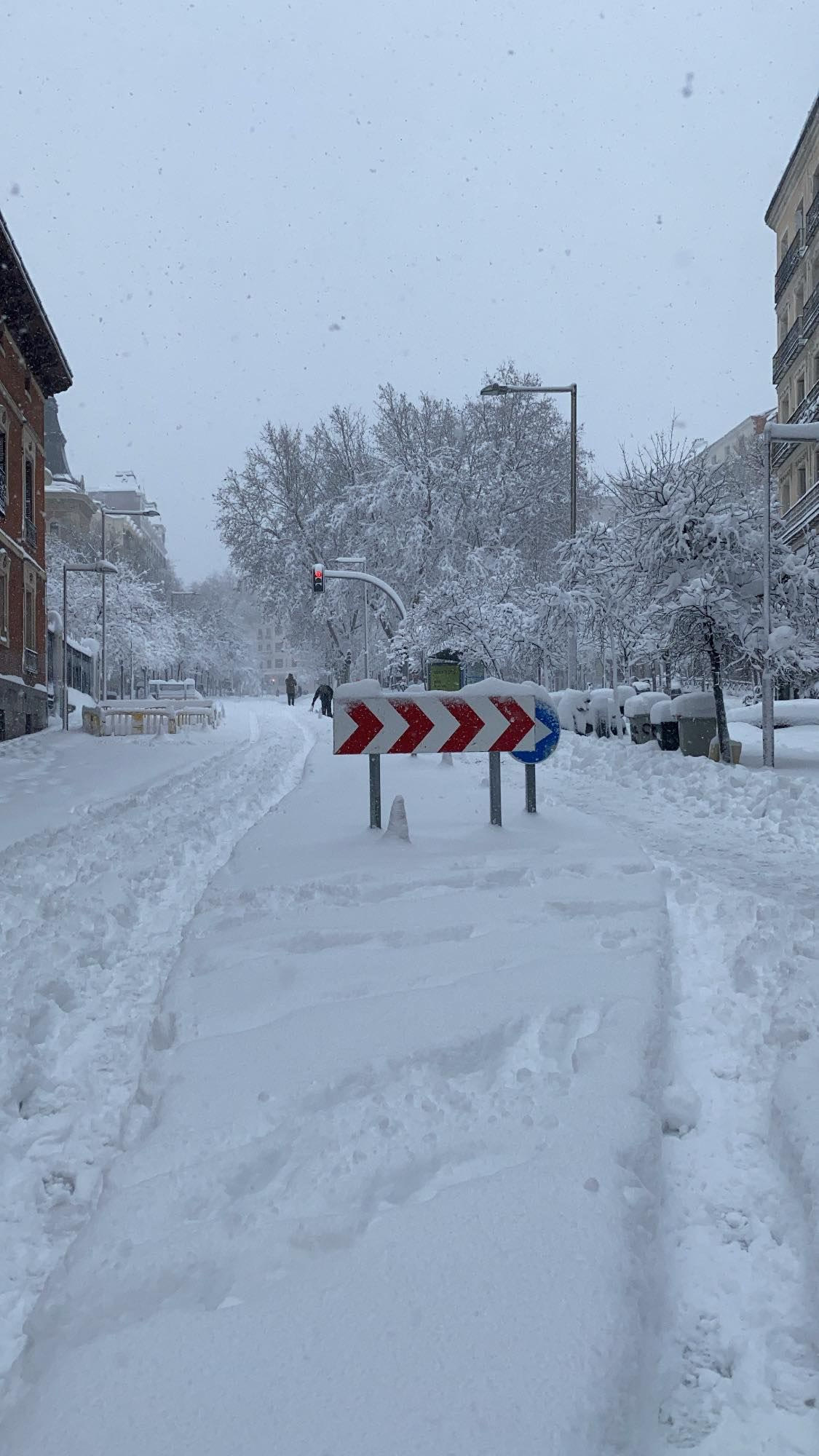 Με τους δρόμους σκεπασμένους από τα χιόνια ήταν αδύνατο να πλησιάσουν το αεροδρόμιο, το οποίο έτσι κι αλλιώς είχε κλείσει. Το χιόνι εξακολουθούσε να πέφτει κάνοντας τη Μαδρίτη ένα απέραντο χιονοδρομικό κέντρο.