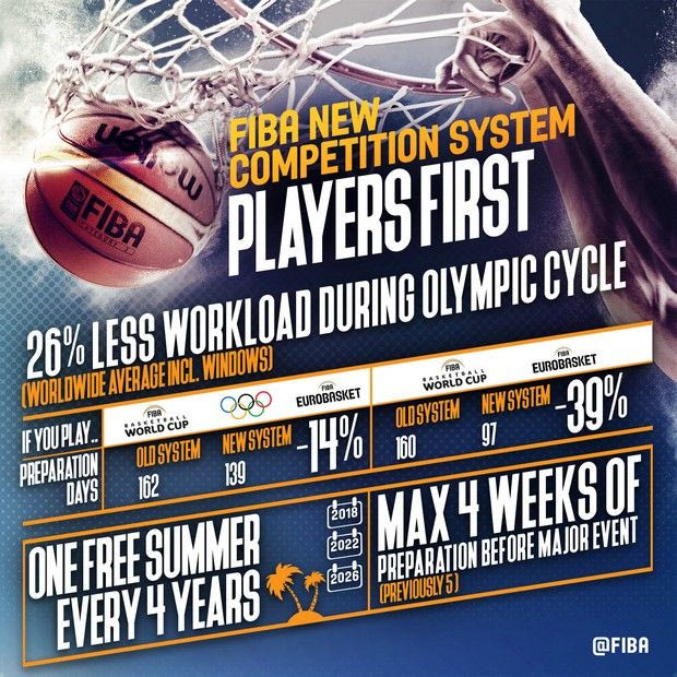 Μ’ ένα αναλυτικό γράφημα που έδωσε στη δημοσιότητα η FIBA επιχειρεί να εξηγήσει πώς και γιατί ο νέος τρόπος που θα γίνεται η διαδικασία πρόκρισης στις τελικές φάσεις των Ευρωμπάσκετ – Μουντομπάσκετ μόνο οφέλη θα έχει για τους διεθνείς παίκτες.