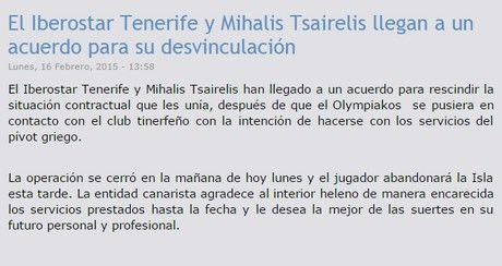 Σύμφωνα με την επίσημη ενημέρωση από την ισπανική ομάδα, ο Έλληνας φόργουορντ έλυσε το συμβόλαιο που τον δέσμευε μέχρι το τέλος της σεζόν και πλέον ανήκει στο δυναμικό των “ερυθρολεύκων”.
