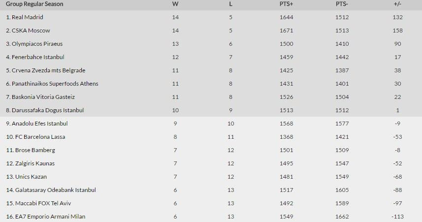 Το αποτέλεσμα αυτό άφησε τους Πειραιώτες στην 3η θέση της βαθμολογίας της Euroleague με μία νίκη λιγότερο έναντι των Ρεάλ Μαδρίτης και ΤΣΣΚΑ Μόσχας που συγκατοικούν πλέον στην κορυφή, ενώ η ολοκλήρωση της 19ης αγωνιστικής βρίσκει τον έτερο εκπρόσωπό μας στη διοργάνωση, Παναθηναϊκό, στην 6η θέση.