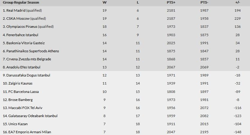 Με τα αποτελέσματα μάλιστα αυτής της αγωνιστικής, οι ΤΣΣΚΑ Μόσχας, Ρεάλ Μαδρίτης και Ολυμπιακός εξασφάλισαν και μαθηματικά την παρουσίας τους στα προημιτελικά της διοργάνωσης αν και απομένουν ακόμα πέντε αγωνιστικές για το φινάλε του μαραθωνίου της regular season.