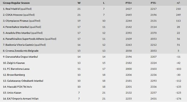 Η κατάταξη της Euroleague μετά την ήττα του Ολυμπιακού
