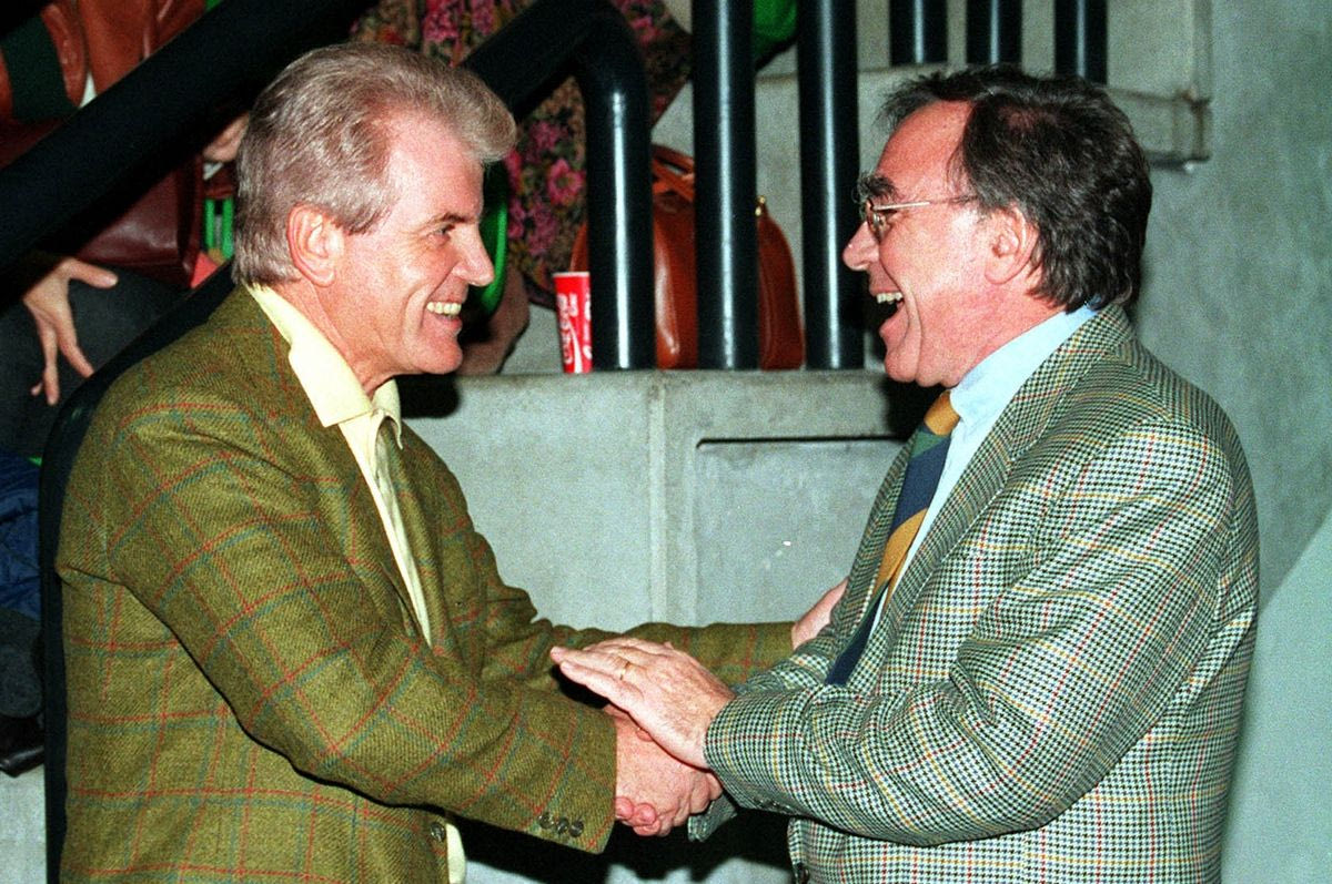 Ο Τζιλμπέρτο Μπενετόν και ο Σωκράτης Κόκκαλης στο Τρεβίζο, σε αγώνα Μπενετόν-Ολυμπιακού. Αμφότεροι πρωταγωνίστησαν στην δημιουργία της Ευρωλίγκας το 2000 ACTION IMAGES