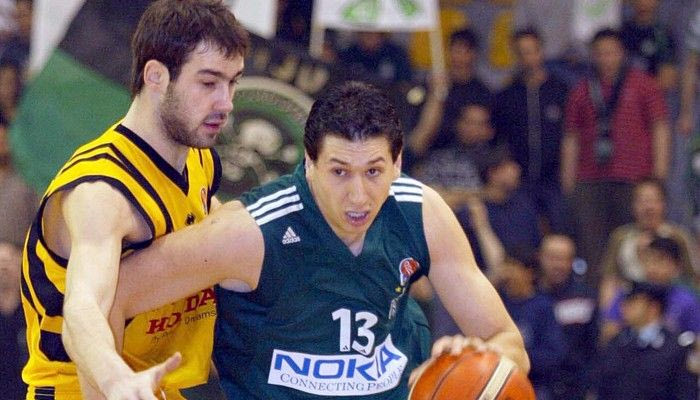 Ο Σπανούλης μαρκάρει τον Διαμαντίδη σε παιχνίδι Αμαρουσίου-Παναθηναϊκού το 2005.