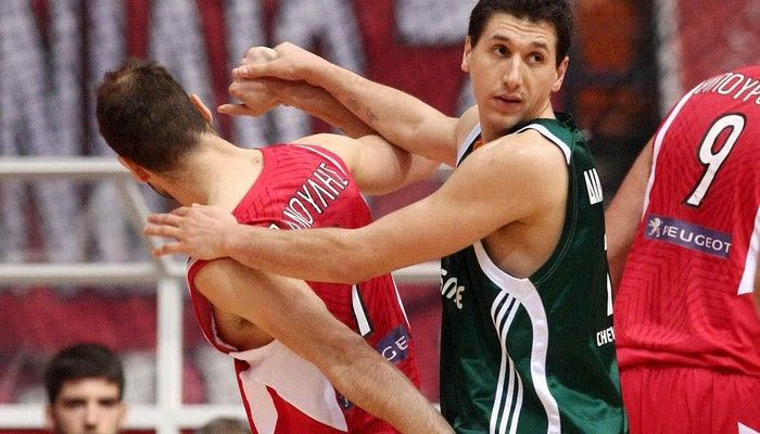Με τον Παναγιώτη Αγγελόπουλο ως παίκτης του Ολυμπιακού μετά από νίκη κόντρα στον Παναθηναϊκό.