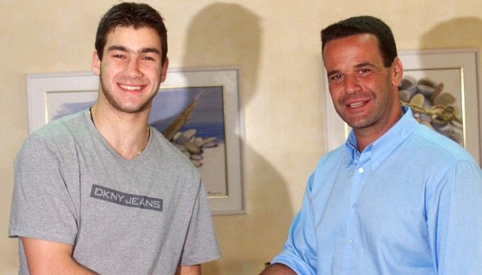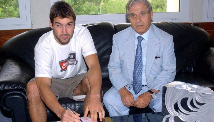 Ο Σπανούλης υπογράφει το πρώτο συμβόλαιό του με τον Παναθηναϊκό το 2005 στα γραφεία της ΒΙΑΝΕΞ.