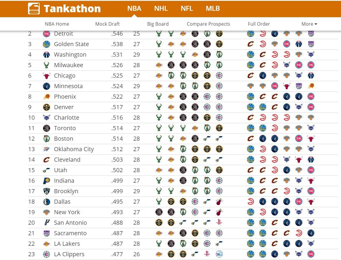 Το Bleacher Report Betting δίνει φαβορί τους Λέικερς και στέλνει τους Μπακς μεταξύ 2ης και 3ης θέσης. Σε συνδυασμό με στοιχεία από το site tankathon.com γίνεται σαφές ότι το πρόγραμμα των Λέικερς στους εναπομείναντες 28 αγώνες είναι ελάχιστα πιο ευνοικό από εκείνο των Μπακς, με την ομάδα του Γιάννη Αντετοκούνμπο να καλείται να αντιμετωπίσει 3 φορές τους Τορόντο Ράπτορς και 2 τους Μπόστον Σέλτικς, σε έναν όμιλο ομάδων με συνολικό ποσοστό νικών που ξεπερνά το 52%. Οι Λέικερς, από την πλευρά τους, θα έχουν τη δυνατότητα να πάρουν μια (θεωρητικά) εύκολη πεντάδα νικών από τις διπλές αναμετρήσεις με τους Γκόλντεν Στέιτ Γουόριορς, τους Ατλάντα Χοκς και τους Πέλικανς της Νέας Ορλεάνης, παίζοντας με ομάδες των οποίων το συνολικό ποσοστό νικών αγγίζει μόλις το 48,7%.