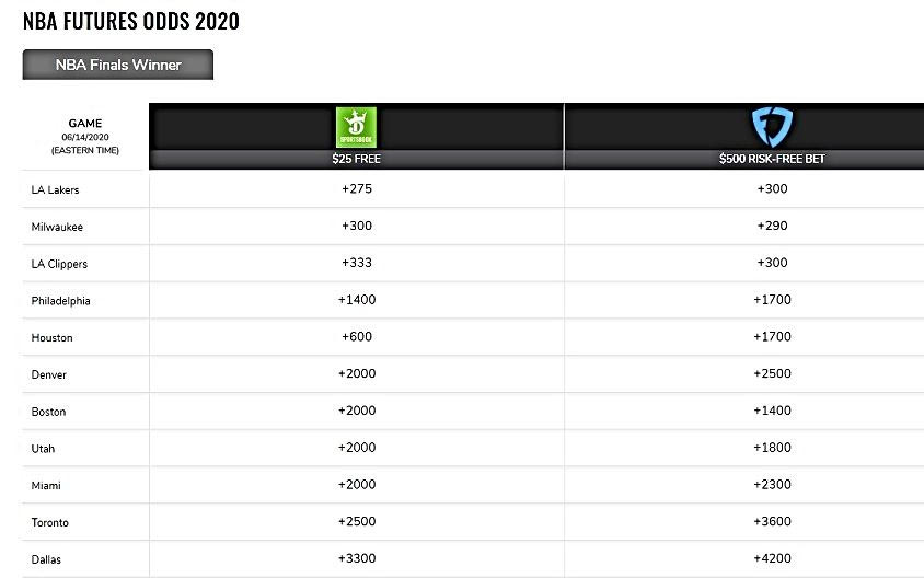 To Sports Betting Dime δίνει επίσης μια σχεδόν όμοια εικόνα, τοποθετώντας παρ’ όλα αυτά τους Μπακς αρκετά πιο κοντά στη θέση του φαβορί, ενώ το Oddschecker τους δίνει ξεκάθαρο προβάδισμα στη διεκδίκηση του πρωταθλήματος, δίνοντας όμως και ιδιαίτερα υψηλά ποσοστά τους Λος Άντζελες Κλίπερς.