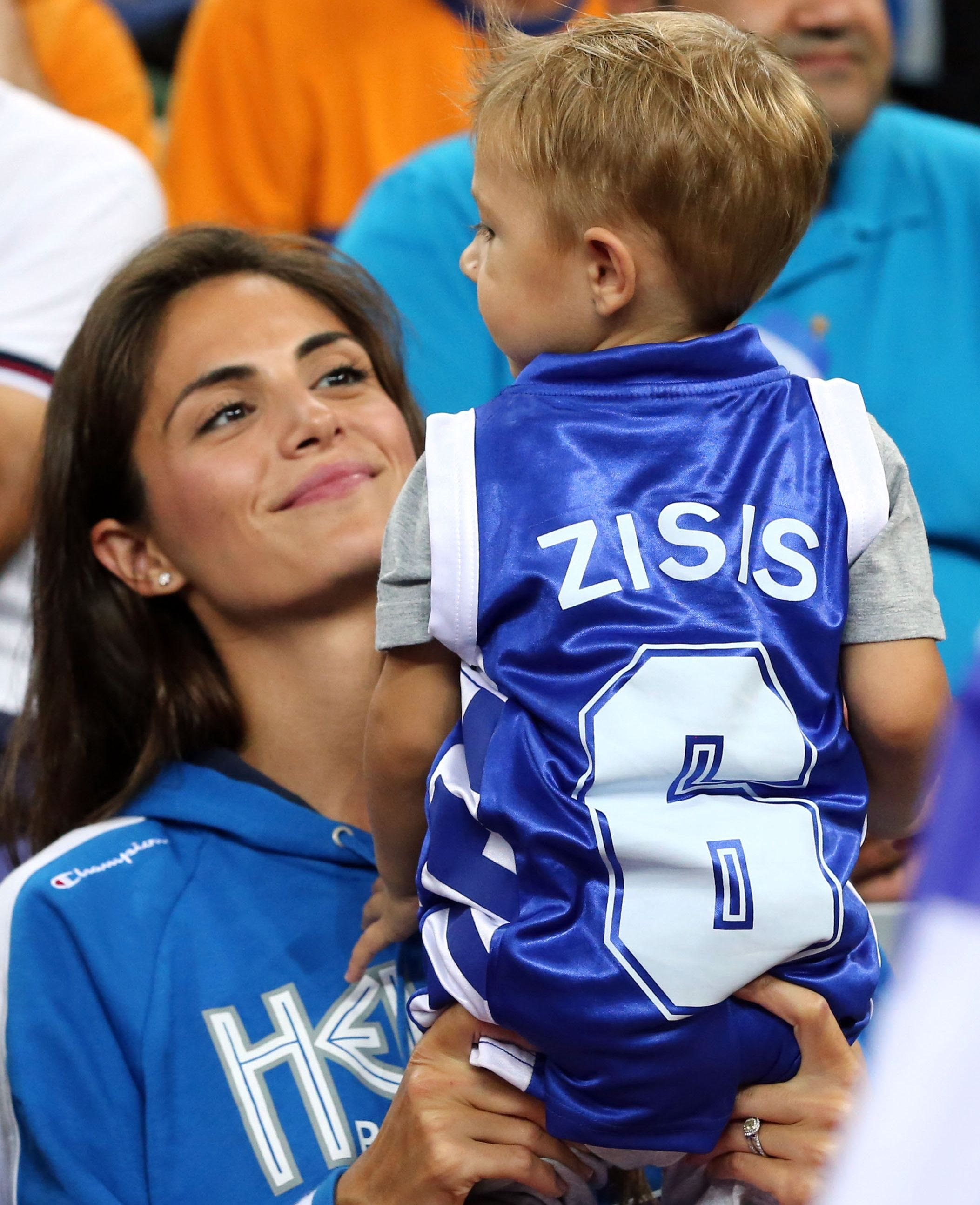 Πολλές από τις συντρόφους των Ελλήνων διεθνών βρίσκονται στο Ζάγκρεμπ και βλέπουν από κοντά τις προσπάθειες της Εθνικής, όπως η σύζυγος του Νίκου Ζήση, Φανή Σκούφη, την οποία την “έπιασε” η κάμερα μαζί με τον μικρό γιο του αρχηγού, να του τραγουδά τον ελληνικό ύμνο.