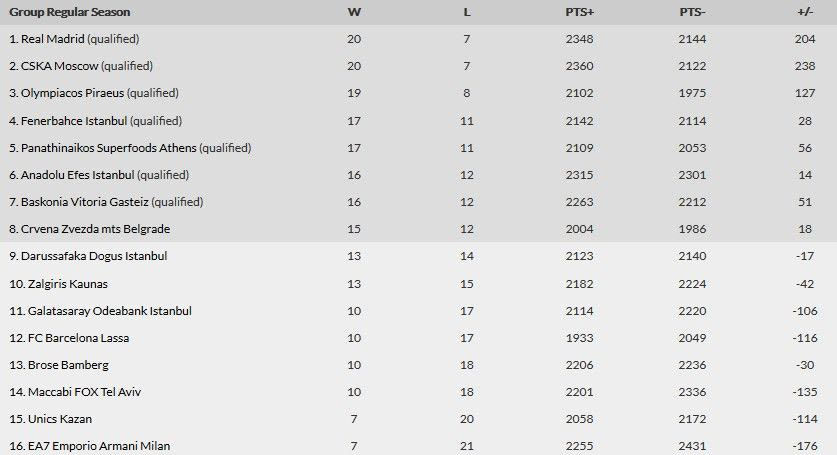 1. Ρεάλ Μαδρίτης (προκρίθηκε) 20-7