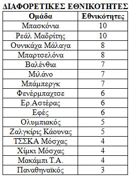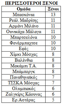 Οι ομάδες που χρειάζονται… μεταφραστή είναι Μπασκόνια και Ρεάλ με παίκτες από 10 διαφορετικές χώρες ενώ ακολουθούν οι άλλες τρεις ισπανικές ομάδες Ουνικάχα (8), Μπαρτσελόνα (8) και Βαλένθια (7).