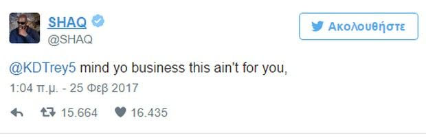 Ο Σακίλ Ο'Νιλ άνοιξε δεύτερο twitter-ικό μέτωπο με παίκτη των Γουόριορς. Απαίτησε μάλιστα από τον Κέβιν Ντουράντ να μην ανακατεύεται στη διαμάχη του με τον Τζαβέιλ ΜακΓκι γιατί δεν τον αφορά.