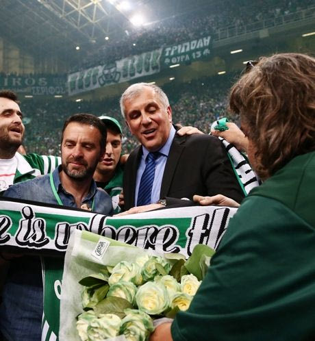 Ο πρώην κόουτς του τριφυλλιού δέχθηκε τιμητική πλακέτα από τον Παύλο Γιαννακόπουλο και τον Θανάση Γιαννακόπουλο, ο οποίος έκλαιγε σαν μικρό παιδί, ενώ στο σύντομο λόγο που έβγαλε μίλησε σε άπταιστα ελληνικά, για πρώτη φορά μετά τα τόσα χρόνια παρουσίας στην Ελλάδα: “Καταλαβαίνετε πόσο δύσκολο είναι αυτό σήμερα για μένα. Είστε οι καλύτεροι! Σας αγαπώ πάρα πάρα πάρα πάρα πολύ! Σας ευχαριστώ!” , ήταν τα λόγια του.