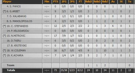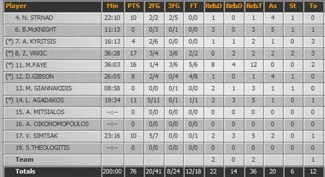 Τα δεκάλεπτα: 15-16, 34-34, 60-53, 76-73
